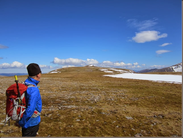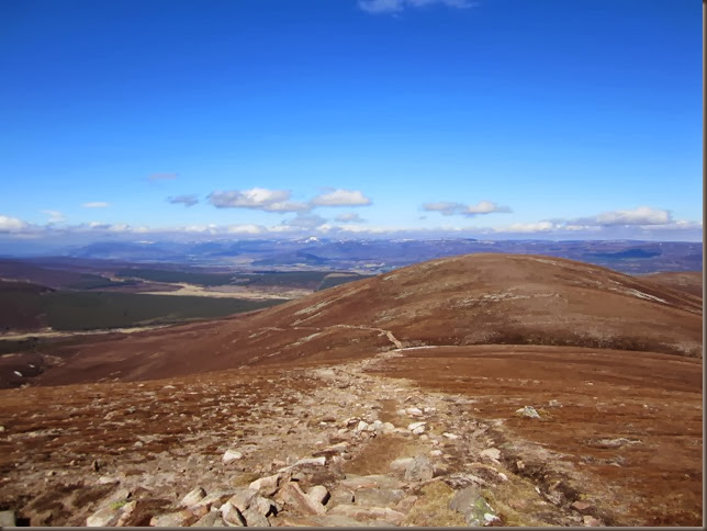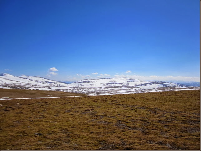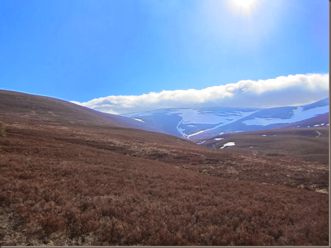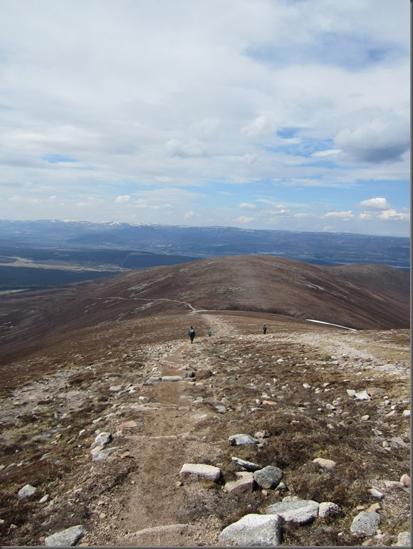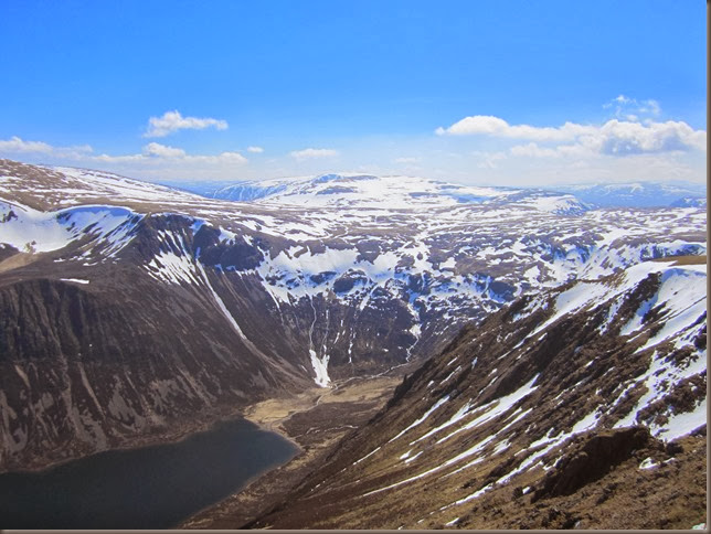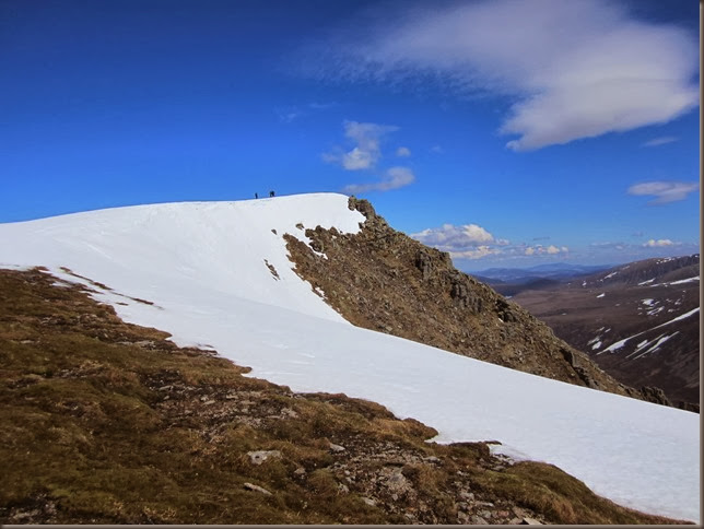 Having decided it wasn’t worth carrying our ice axes we had to take the safe but steep grassy slopes to the left of the track, these eventually spat us out near the summit of Carn Ban Mor to be greeted with this fabulous view.