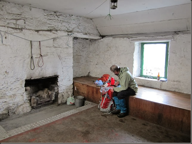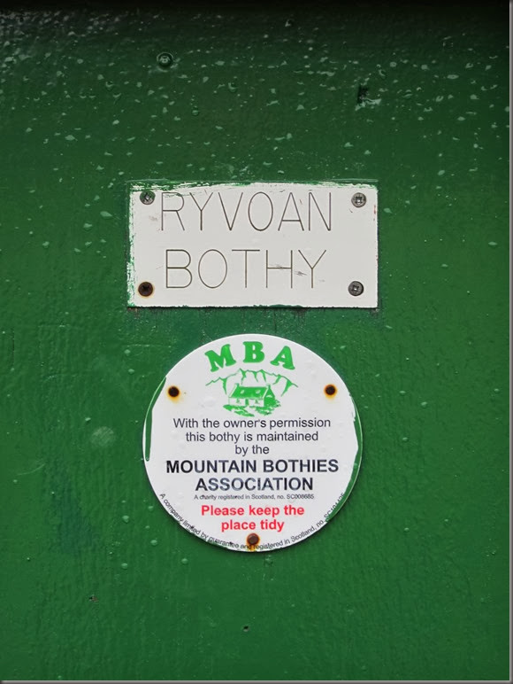 The first morning dawned cold, wet and windy. Not being prepared to spend the day following a compass bearing in unpleasant conditions, we decided on low level walk to Ryvoen Bothy.
